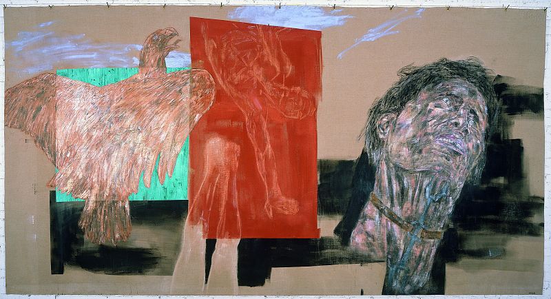 • Leon Golub. 'Prometheus, The Heretic's Fork and The Green World' (Prometeo, la horquilla del hereje y el mundo verde) (1999)Colección Harriet y Ulrich Meyer