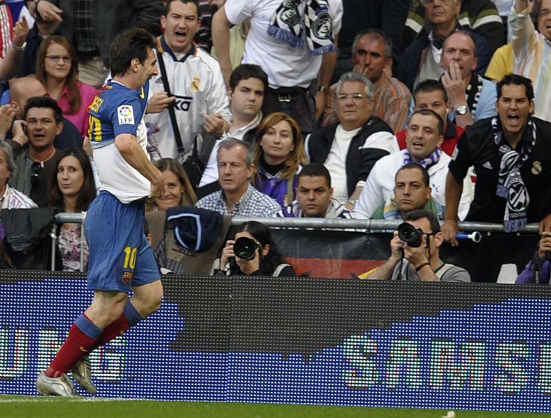 18.08.2009Lionel celebra en el Santiago Bernabeu el gol que le metió al Madrid en la goleada del Barça: 2-6REUTERS -
