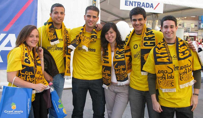 • La marea amarilla. Se calcula que unos 900 aficionados del Gran Canaria se han desplazado desde el archipiélago hasta la capital.