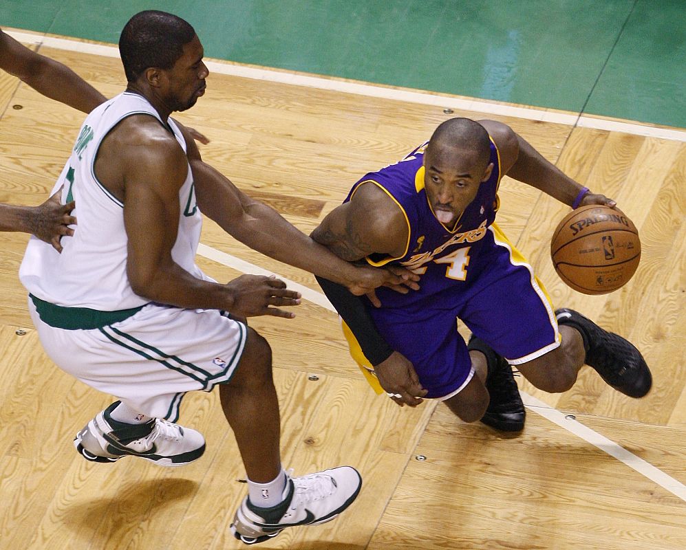 18.06.2008Bryant dribla a Powe en una acción del sexto partido de la final de la NBAREUTERS/Adam Hunger (UNITED STATES)ADAM HUNGER/ REUTERS