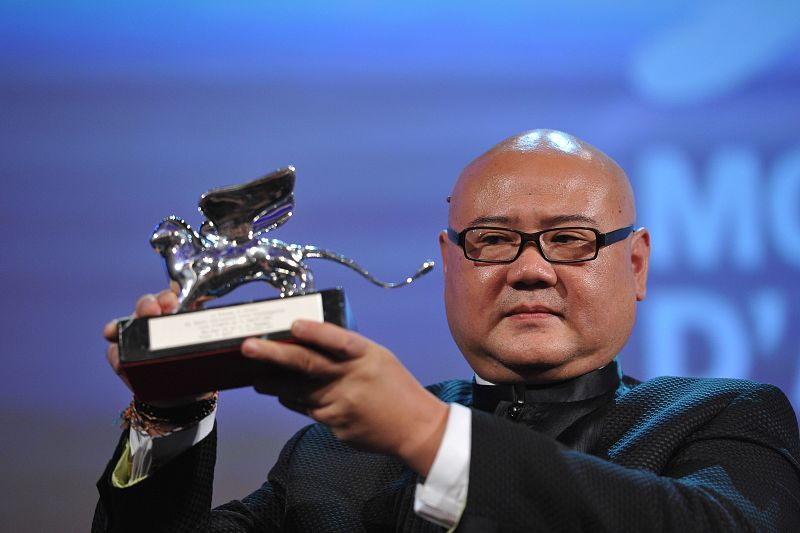 10.09.2011Film director Shangjun Cai poses for the Silver Lion for best direction he received for "Ren Shan Ren Hai (People mountain people sea)" during the award ceremony at the 68th Venice Film Festival on September 10, 2011 at Venice Lido. AFP PHOTO / ALBERTO PIZZOLIAFP PHOTO / ALBERTO PIZZOLI