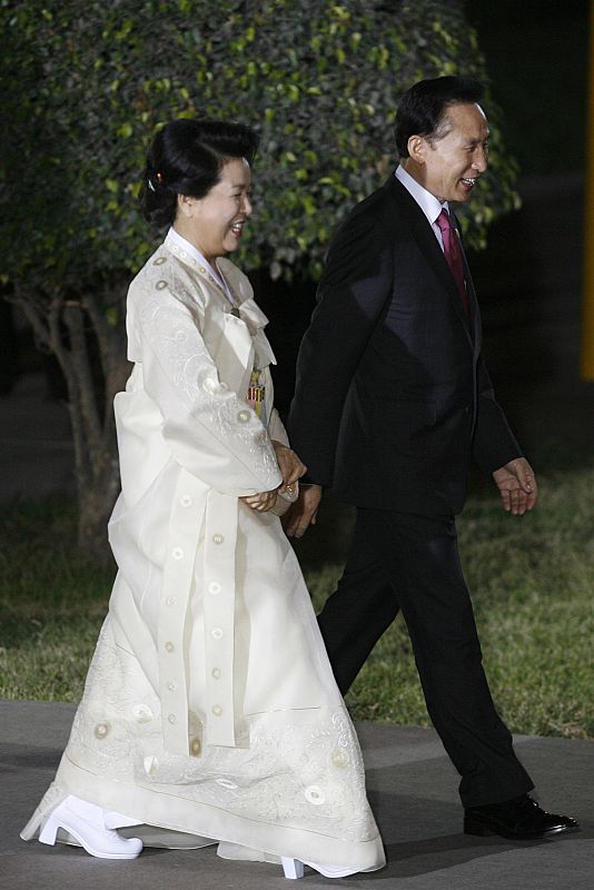 South Korea's President Lee and his wife Kim arrive at the official APEC dinner in Lima