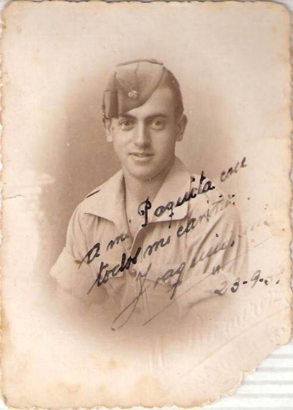 11.09.2008El abuelo de Virginia Carreño se llamaba Joaquín Ruiz Suárez. Esta foto fue tomada en Sevilla, en el año 1939. Por aquella época, Joaquín fue reclutado en "La quinta del biberón".Virginia Carreño