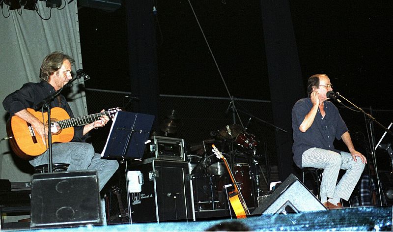 Junto a Silvio Rodríguez durante un concierto en Murcia en 1999.