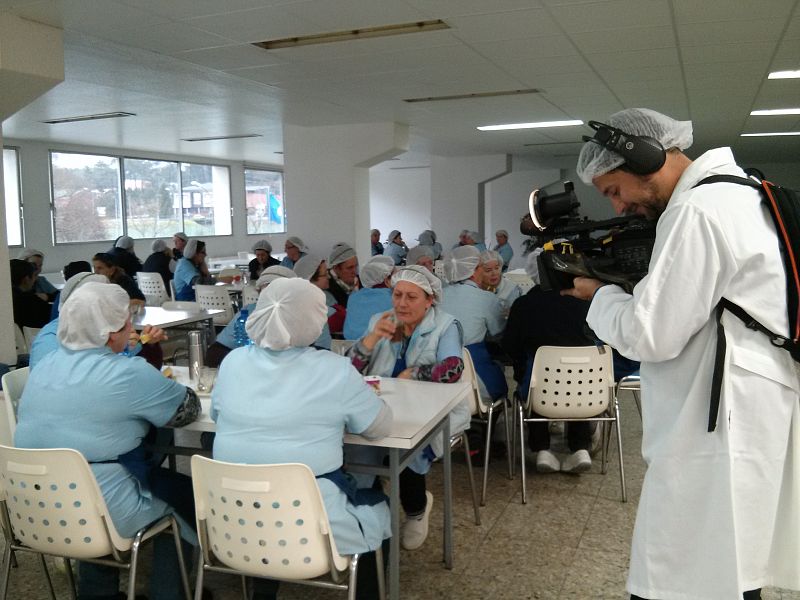 Los trabajadores de la fábrica de Carballo se preparan para las tomas aéreas realizadas por un Octocopter (cámara aérea teledirigida).