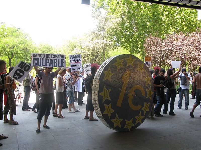 28.07.2011Los 'indignados' portan pancartas en las que culpan de la cris a los bancosRTVE.es -