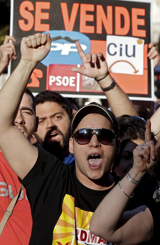 16.05.2011V.18. VALENCIA, 15/05/2011.- Miles de ciudadanos se han manifestado hoy por las calles de Valencia, convocados por el movimiento denominado "Democracia real ya", para reivindicar un cambio tanto político como social y denunciar la "irresponsable gestión económica del país". EFE/Kai Försterling.EFE/Kai Försterling