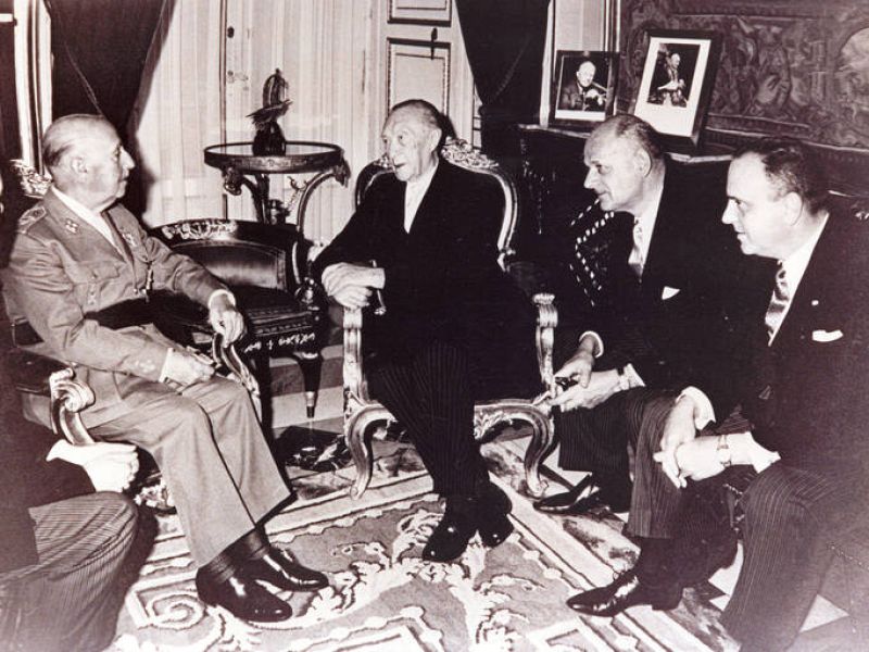 15.01.2012Francisco Franco recibió en 1967 en presencia de Fraga, entonces ministro de Información, al excanciller de la RDA Konrad Adenauer.ARCHIVO DE RNE