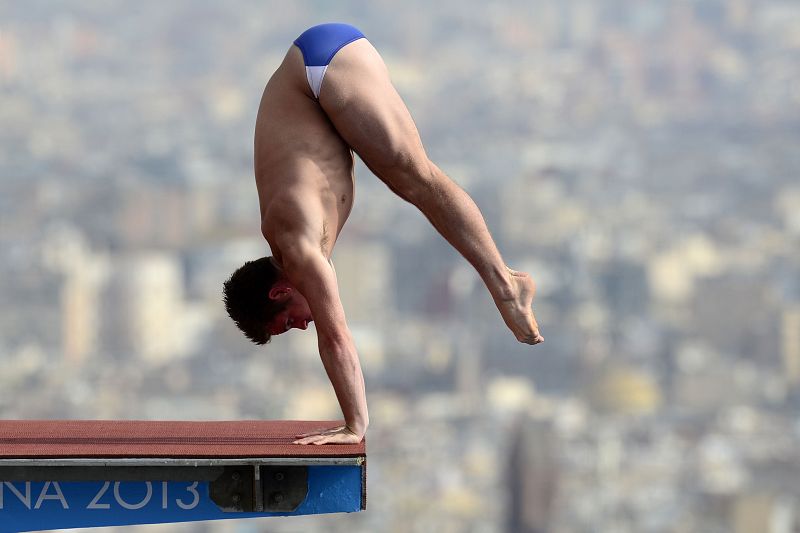 El mexicano Germán Sánchez durante la competición de salto del 10m