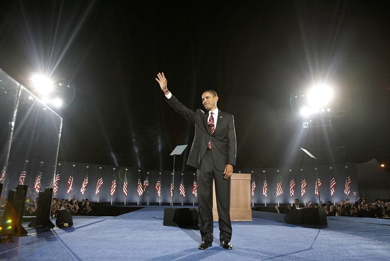 05.11.2008U.S. Democratic President-elect Senator Barack Obama (D-IL) waves during his election night rally in Chicago November 4, 2008. Obama captured the White House on Tuesday after an extraordinary two-year campaign, defeating Republican John McCain to make history as the first black to be elected U.S. president. REUTERS/Jason Reed (UNITED STATES)REUTERS/Jason Reed -