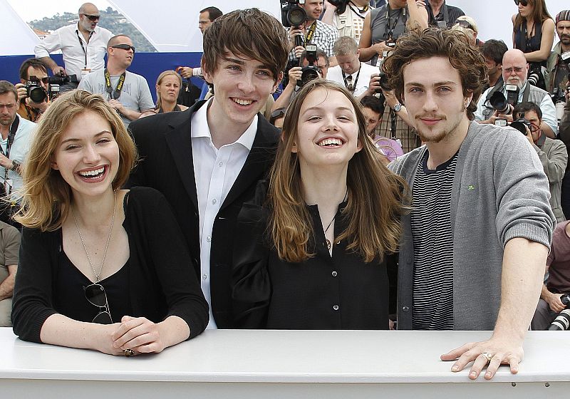 Cast members (L to R) Imogen Poots, Matthew Beard, Hannah Murray and Aaron Johnson pose during a photocall for the film "Chatroom" at the 63rd Cannes Film Festival in Cannes May 14, 2010. REUTERS/Yves Herman (FRANCE - Tags: ENTERTAINMENT)
