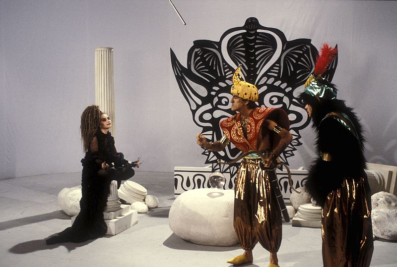 • Pedro Reyes y Alaska en la grabación de 'La bola de cristal' en 1984.