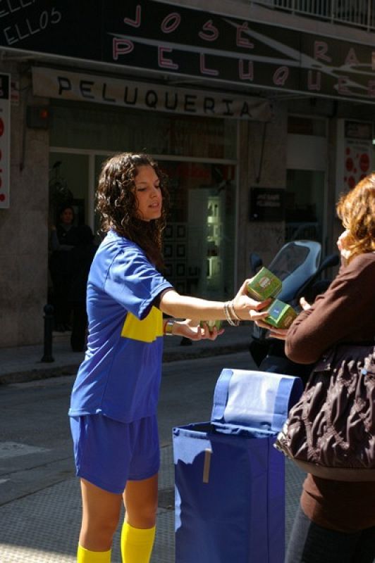 15.03.2010En las inmediaciones de la Plaza Nervión de Sevilla también se han repartido los balones.tve -