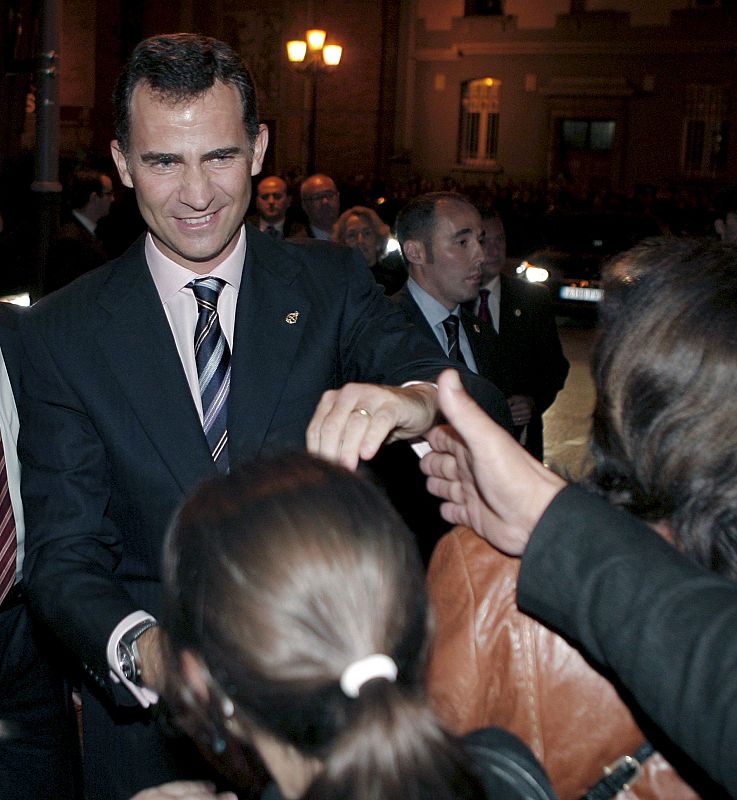 24.10.2008OVD33. OVIEDO (ASTURIAS), 23/10/08.- Don Felipe estrecha la mano de algunas de las personas que se concentraron esta tarde ante el Auditorio de Oviedo para saludar a los Príncipes de Asturias, al finalizar el concierto de clausura de la XVII Semana de Música, organizada por la Fundación Príncipe de Asturias y Cajastu que presidieron, la víspera de la ceremonia de entrega de los Premios que llevan el nombre del heredero de la corona. EFE/J.L.CereijidoEFE/J.L.Cereijido