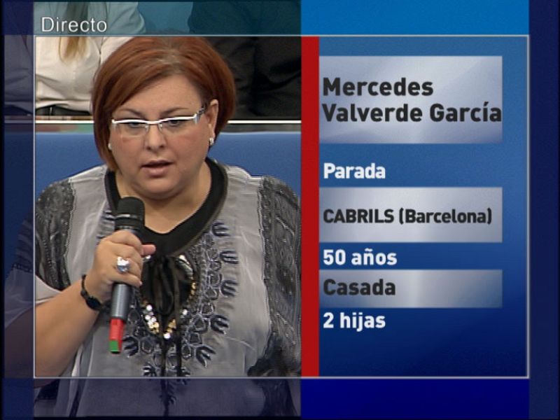 27.10.2009Mercedes Valverde García, parada de Barcelona, pregunta a Fernández Toxo "cómo puede permitir un sindicato que se despida a una mujer estando de baja".TVE -