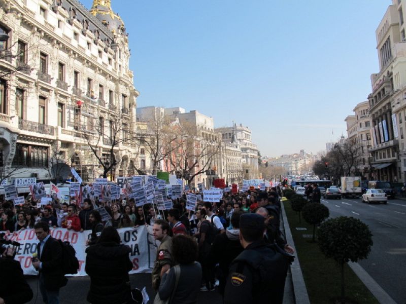 29.02.2012Miles de estudinates han salido a las calles de varias ciudades de España para protestar contra los recortes en educación.RTVE.ES -