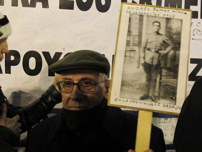 09.02.2012Este hombre se ha acercado a firmar la pancarta de Gazrón con una foto de un familiar asesinado en la Guerra Civil.ANTONIO SERRANO