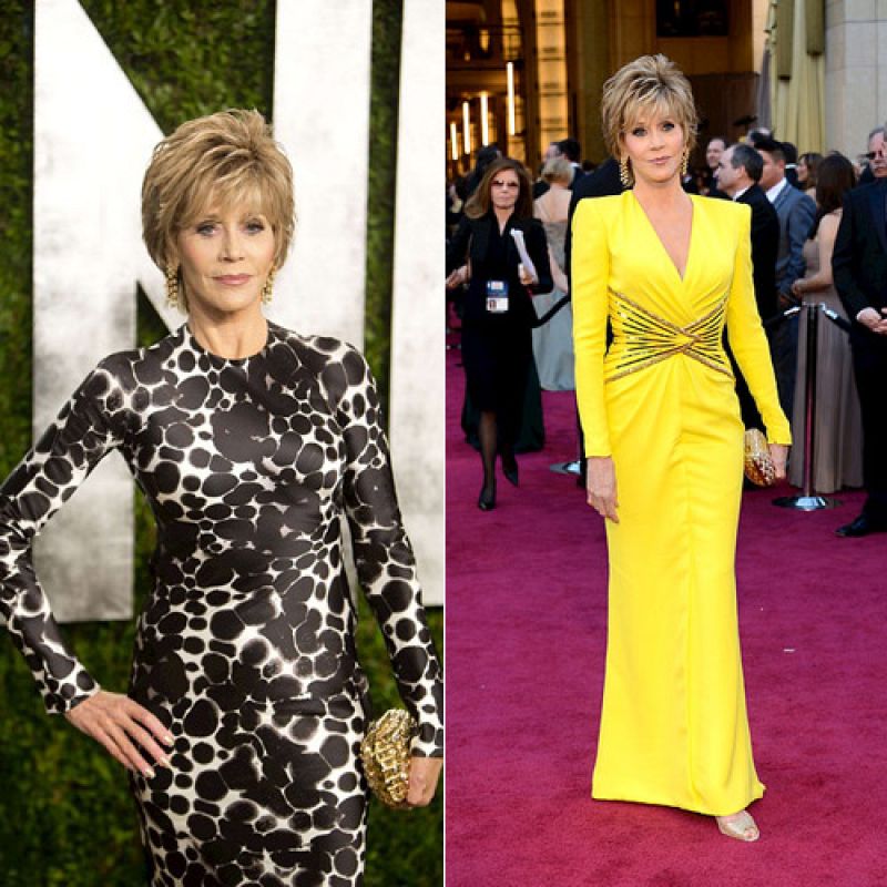 Jane Fonda hizo lo posible para no pasar desapercibida. Cuando su vestido amarillo de Versace ya había recorrido todas las redes sociales del planeta se cambió de vestido y se puso un diseño de Reem Acra.