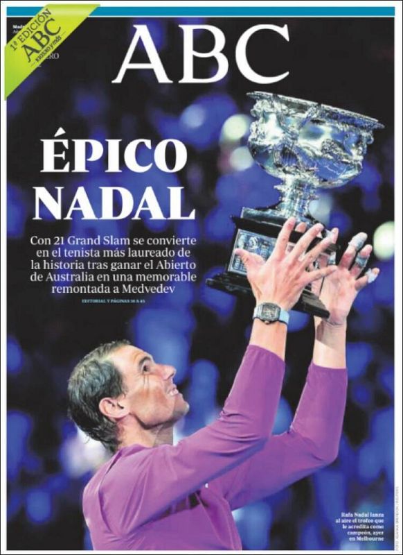 Rafa Nadal, en la prensa de todo el mundo por su 21º Grand Slam