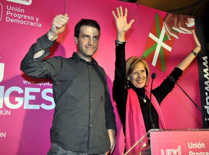 02.03.2009BIL-23 BILBAO, 1/3/09.- La dirigente de UPyD,Rosa Díez,d, y Gorka Maneiro,durante su comparecencia ente los medios tras conocer los resultados de las elecciones autonómicas en el Pais Vasco y Galicia, celebradas hoy. EFE/MIGUEL TOÑAEFE/MIGUEL TOÑA -