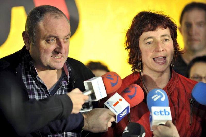 02.03.2009BIL16. BILBAO, 01/03/09.- Los dirigentes abertzales Julen Aginako (i) e Idoia Ibero (d) atienden a la prensa en Bilbao, donde se han reunido para realizar un análisis provisional de los datos electorales. EFE/MIGUEL TOÑAEFE/MIGUEL TOÑA
