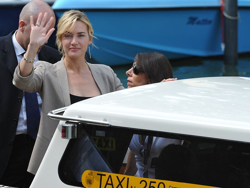 01.09.2011British actress Kate Winslet arrives aboard a motorboat at the 68th Venice Film Festival on September 1, 2011at Venice Lido. "Carnage" by film director Roman Polanski with Kate Winslet is competing for the Golden Lion in the Venezia 68 category. AFP PHOTO / ALBERTO PIZZOLIAFP PHOTO / ALBERTO PIZZOLI