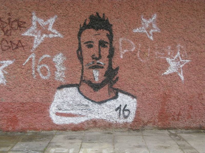 09.02.2009La afición sevillista no olvida al malogrado Antonio Puerta. Un 'graffiti' homenajea de forma permanente al extremo.MARÍA ACEVEDO