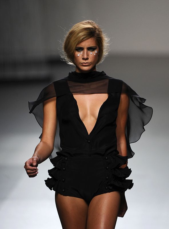 A model displays an outfit by Spanish designer Beba's Closet during the Ego Cibeles Madrid Fashion Week on September 20, 2011. AFP PHOTO/ PIERRE-PHILIPPE MARCOU