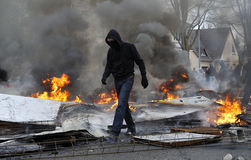 03.04.2009Manifestantes contra la OTAN montan una barricada y lanzan objetos contra la policía en Neuhof, un suburbio de Estrasburgo, Francia, durante la celebración de la cumbre del 60 aniversario de la OTAN. (03/04/09)EFE/BORIS ROESSLER -