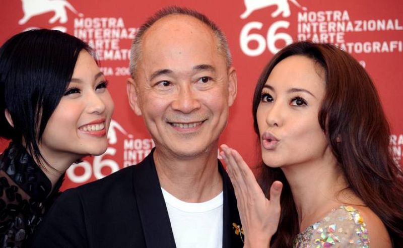 El director chino Yonfan (c) posa con las actrices Xuan Zhu (d) y Terri Kwan (i) durante el pase gráfico de su película "Lei Wangzi" (Principe de Lágrimas) el 4 de septiembre de 2009 en el Festival de Cine de Venecia, Italia. (04.09.2009)