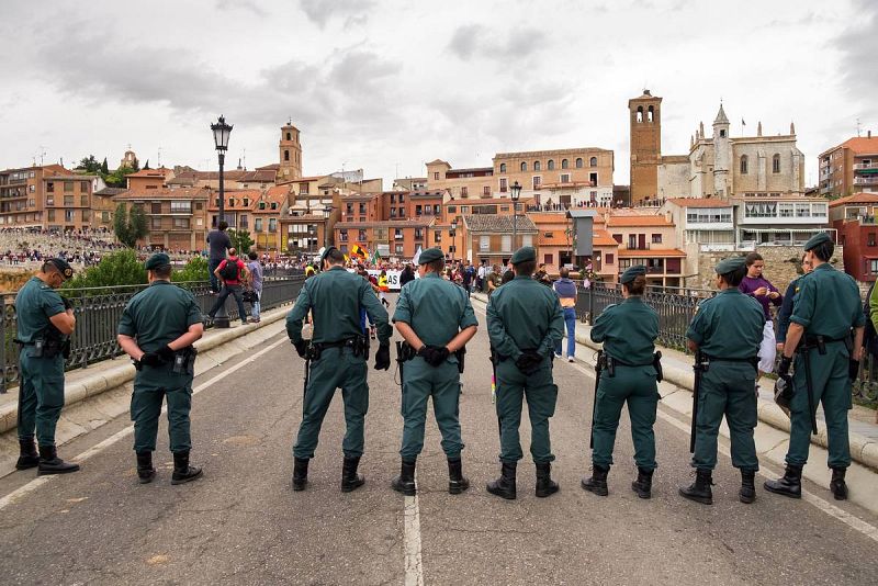 13.09.2016Los agentes de la Guardia Civil, en fila sobre el puente en la entrada de Tordesillas, en un amplio dispositivo de seguridad desplegado para la fiesta en el municipio vallisoletano.noticias -