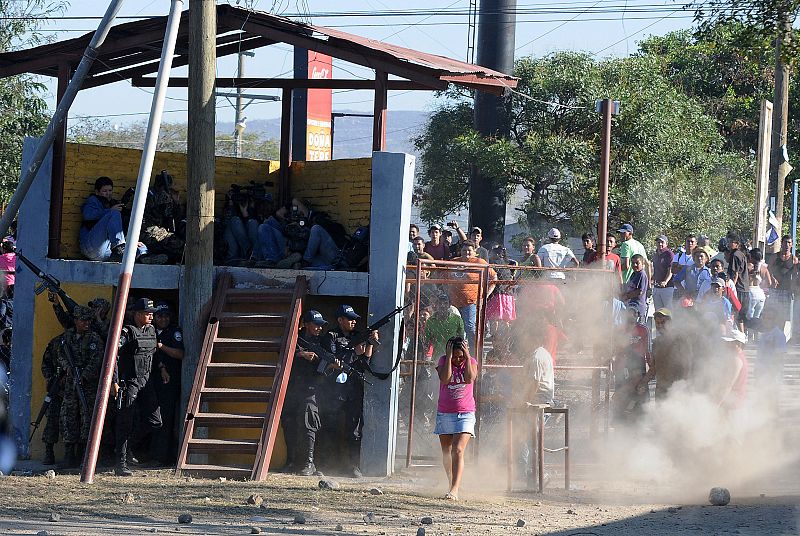 15.02.2012TEG07. COMAYAGUA (HONDURAS), 15/02/2012.- Familiares de los presos de la Granja Penal de Comayagua se enfrentan con la policía hoy, miércoles 15 de febrero de 2012, en Comayagua (Honduras). Más de 350 presos pueden haber muerto en el incendio registrado en esta prisión, aunque se cree que esa cifra puede incluir también a algunos otros que se hayan fugado, de acuerdo con fuentes penitenciarias. EFE/Gustavo AmadorEFE/Gustavo Amador -