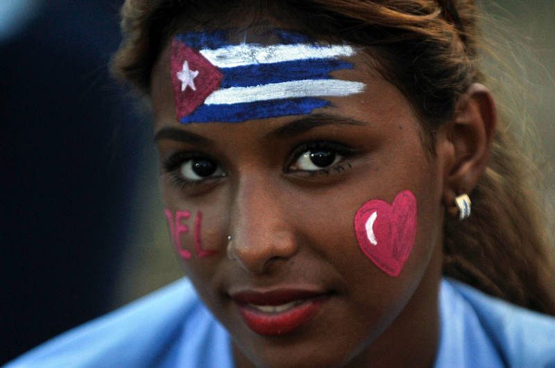 04.12.2016Una chica con la cara pintada con una bandera cubana, un corazón y el nombre de Fidel asiste al homenaje póstumo que ha tenido lugar este sábado, 3 de diciembre de 2016, en Santiago de Cuba.AFP PHOTO / PEDRO PARDO -