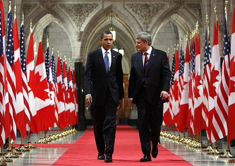 Obama y el primer ministro canadiense, Stephen Harper