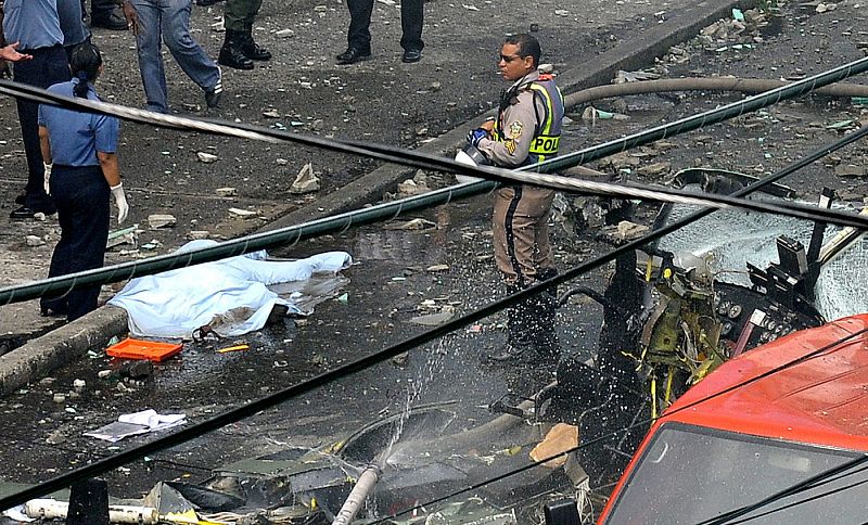 30.05.2008PAN10. CIUDAD DE PANAMÁ (PANAMÁ), 29/05/08. Restos del helicóptero donde el general director de Carabineros de Chile, José Alejandro Bernales, murió hoy, 29 de mayo de 2008, al estrellarse en una zona comercial del centro de la Ciudad de Panamá. Las autoridades investigan las causas del siniestro. EFE/Alejandro BolívarEFE