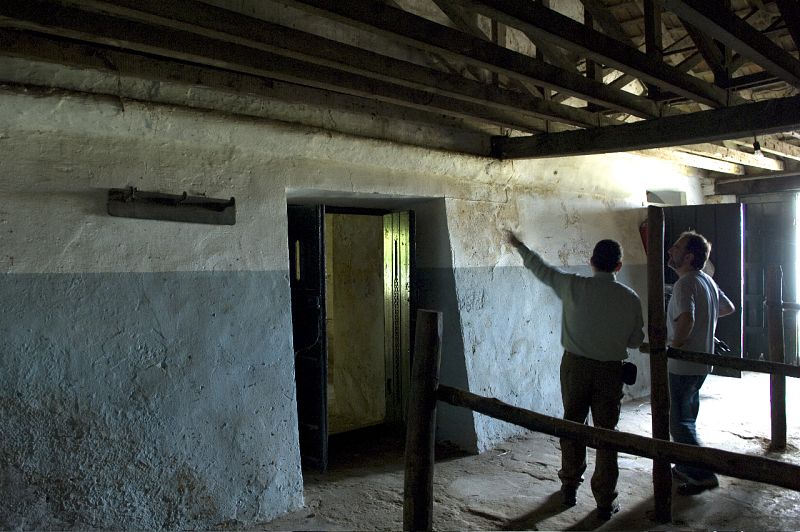 10.07.2008Base de la Torre en el interior de las cuadras del tercio de González. Se observa la pared inclinada y la puerta practicada para acceder a la mazmorra.CSIC
