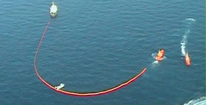 04.06.2008V07. VALENCIA, 03/06/08.-El delegado del Gobierno en la Comunitat Valenciana, Ricardo Peralta, ha informado a EFE de que la mancha principal del vertido de fuel situada frente a las costas de Valencia está "prácticamente controlada" después de que se hayan logrado recoger 3.200 kilos de este residuo en el mar. En la imagen, un barco pasa junto a una de las barreras marítimas instaladas para contener el vertido. EFE/TV Canal NouEFE/TV Canal Nou -