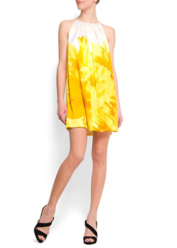 Vestido de flores blanco y amarillo de Mango. 19,99¿