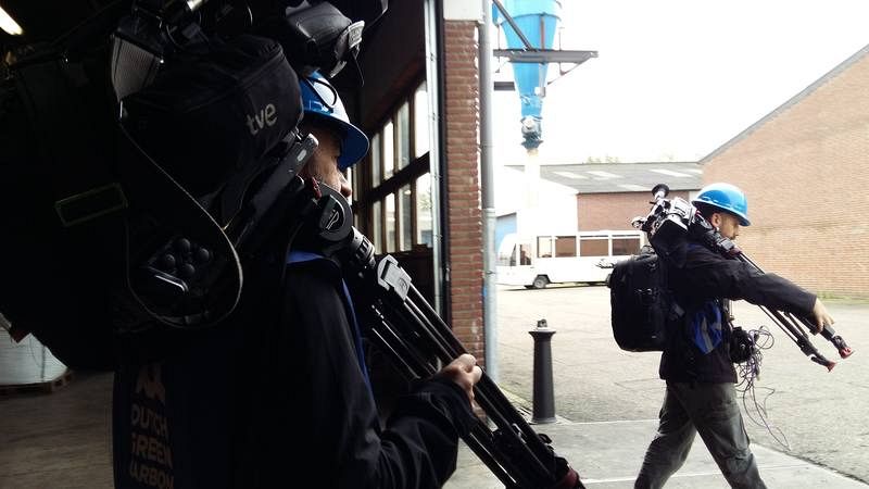Josechu y Alfredo se preparan para un rodaje en la Fábrica de Neumáticos