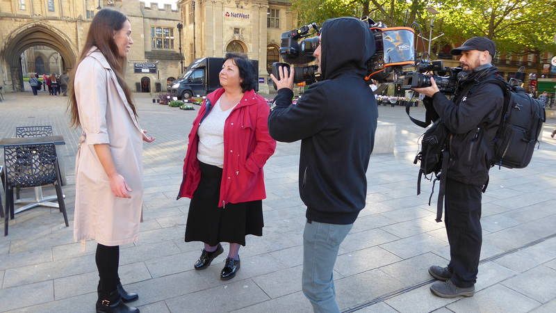 Paseo de Ester y Kate Thomas por las calles de Peterborough