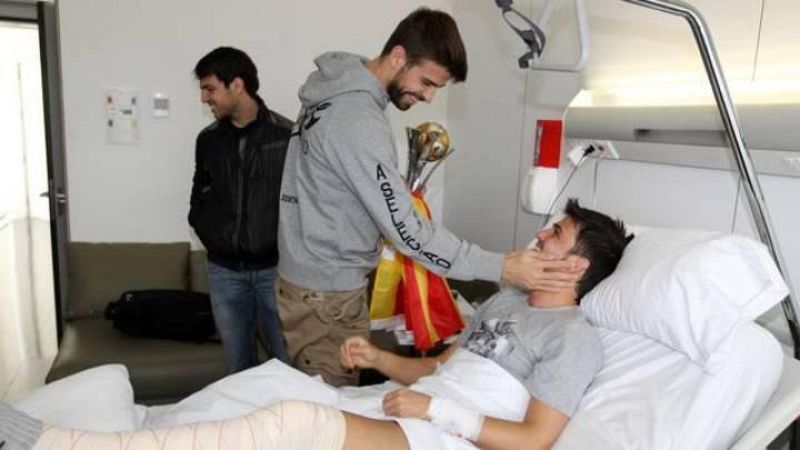 21.12.2011El defensa culé se interesa, cariñosamente, por el estado de salud de su compañero, David Villa.noticias