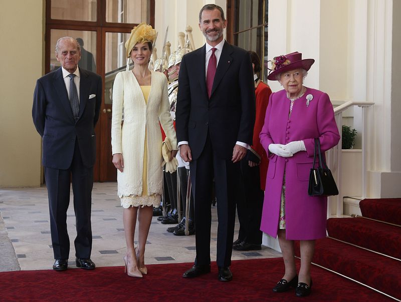 Los reyes acompañados de Isabel II y del Duque de Edimburgo.