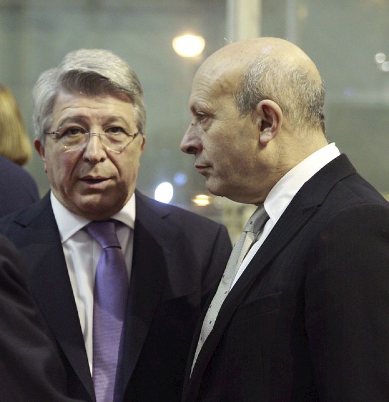 13.01.2014El ministro de Cultura, José Ignacio Wert, junto al presidente de la Entidad de Gestión de Derechos de los Productores Audiovisuales (Egeda), Enrique Cerezo (i) a su llegada a la ceremonia de entrega del XIX Premio José María Forqué que se celebra hoy en el Palacio Municipal de Congresos de Madrid. EFE/Alberto MartinEFE/Alberto Martin