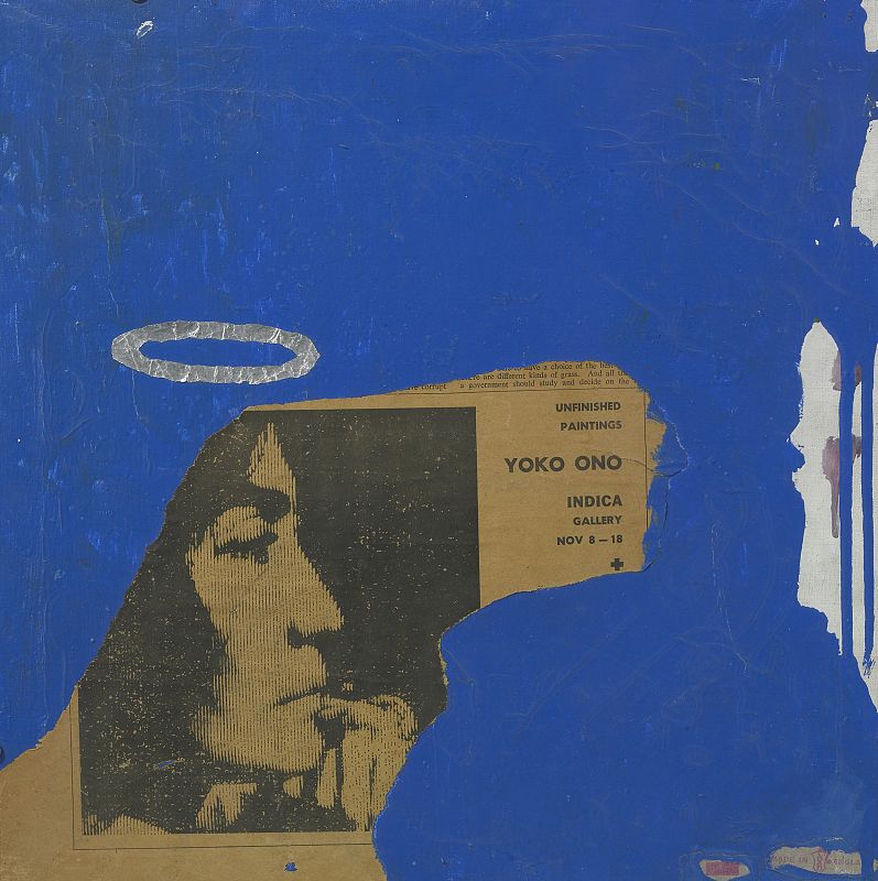 08.03.2014painted newspaper clipping collage on board© Yoko Ono