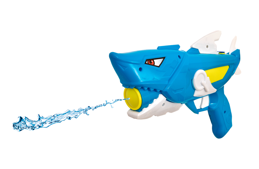Consigue este pistolón tiburón de agua y mójalos a todos con su superchorro.