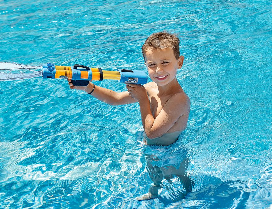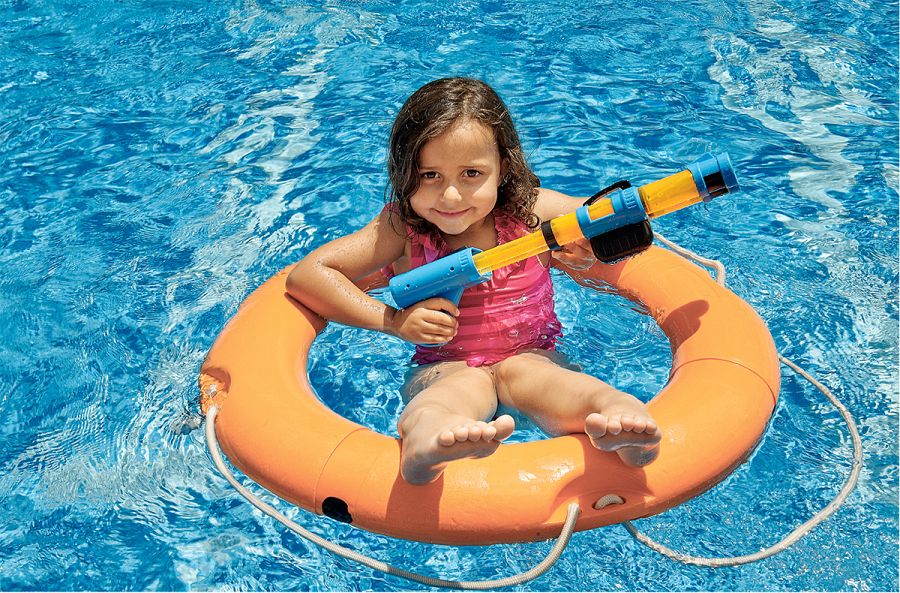 De regalo este lanzachorros gigante con doble cañón de agua y mirilla,