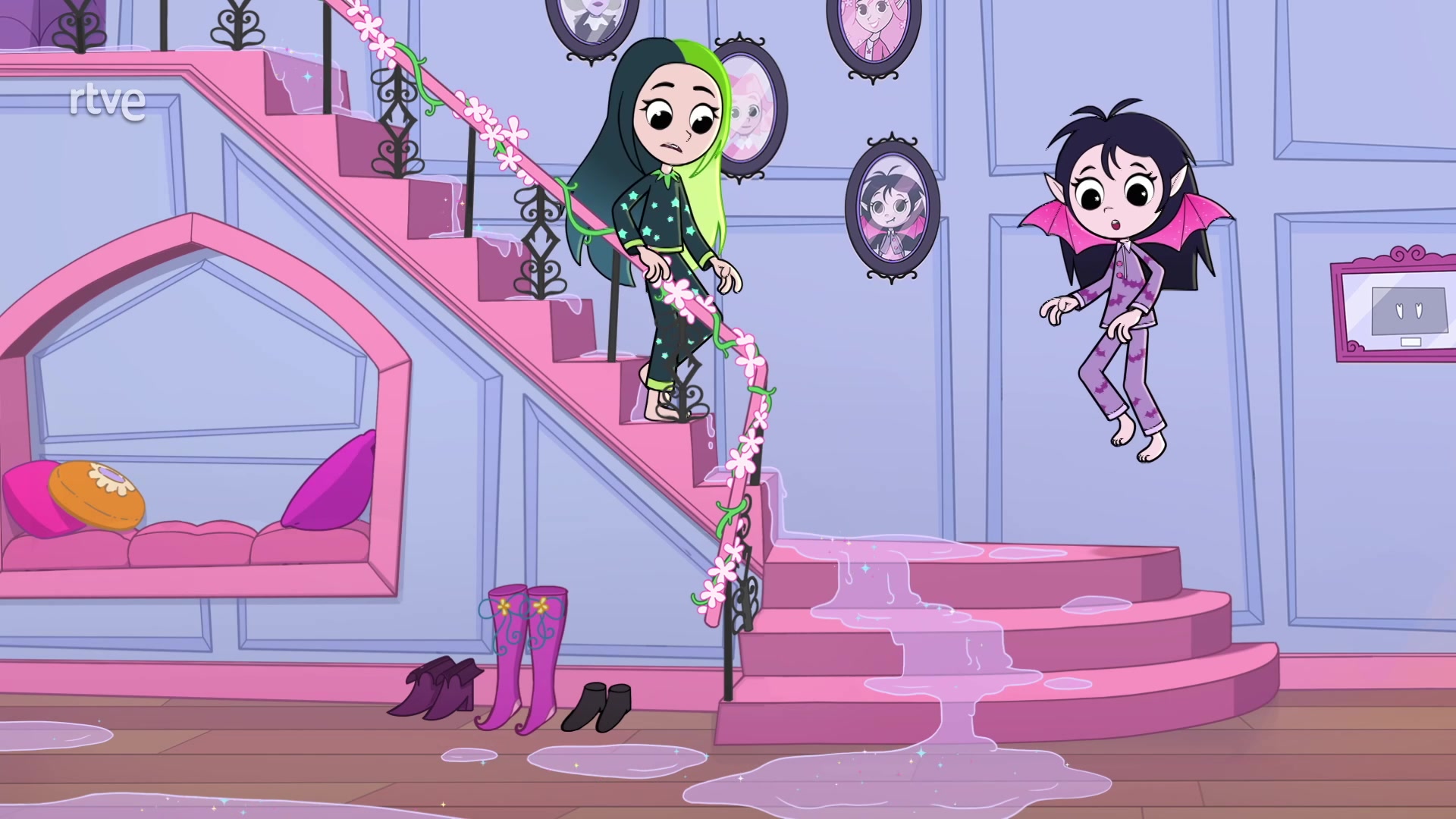 Su mejor amiga en estas peripecias es {*}Pink Rabbit{*}, un conejo rosa muy especial que la acompaña, la anima y muchas veces le sirve como cómplice de sus travesuras y sueños. Además, su familia está formada por personajes cariñosos y peculiares: su {*}madre hada{*}, siempre optimista; su {*}padre vampiro{*}, elegante y protector; y otros amigos con características mágicas, como otros hadas, vampiros, fantasmas y criaturas encantadas.