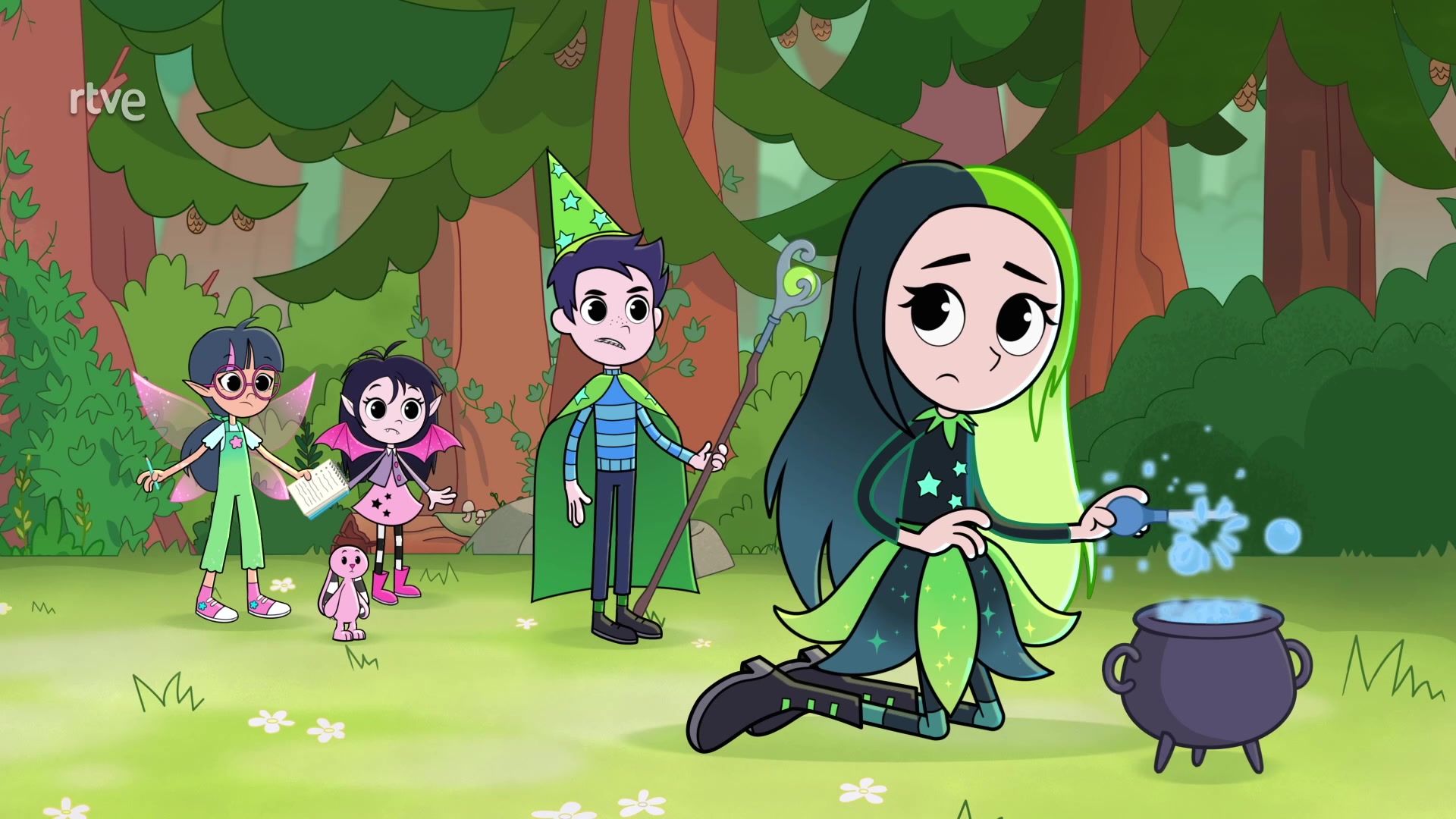 Su mejor amiga en estas peripecias es {*}Pink Rabbit{*}, un conejo rosa muy especial que la acompaña, la anima y muchas veces le sirve como cómplice de sus travesuras y sueños. Además, su familia está formada por personajes cariñosos y peculiares: su {*}madre hada{*}, siempre optimista; su {*}padre vampiro{*}, elegante y protector; y otros amigos con características mágicas, como otros hadas, vampiros, fantasmas y criaturas encantadas.