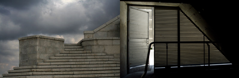 La exposición "Doble Espacio", patrocinada por la Fundación Aena, contrapone dos miradas que tratan de mostrar los paralelismos entre espacios mínimos del aeropuerto de Barajas y de la ciudad de Madrid, rincones cotidianos, arquitecturas sencillas, que ambos, Berguizas y Urbina, transforman a través del objetivo de su cámara.