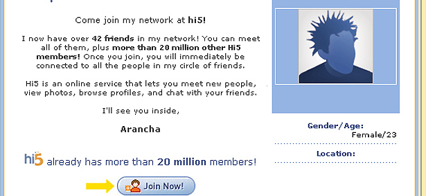 Una noche decides abrir el típico mensaje que, por lo general, ignoras o eliminas directamente. Es la tercera invitación en esta semana que recibes de un amigo, conocido o enemigo íntimo que tiene tu email para entrar en una red social llamada hi5 y, ante tanta insistencia, terminas por pensar que estás totalmente 'out' de la nueva moda en la sociabilidad digital.
